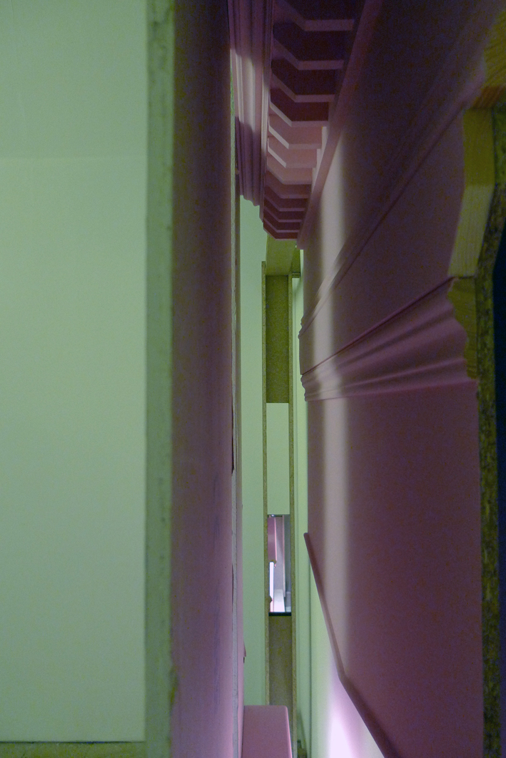 The accompanying projected text piece suggests stories hidden within and beyond the wall, and sets a dialogue in motion between the inner and outer, structure and ornament, ideal and appearance.