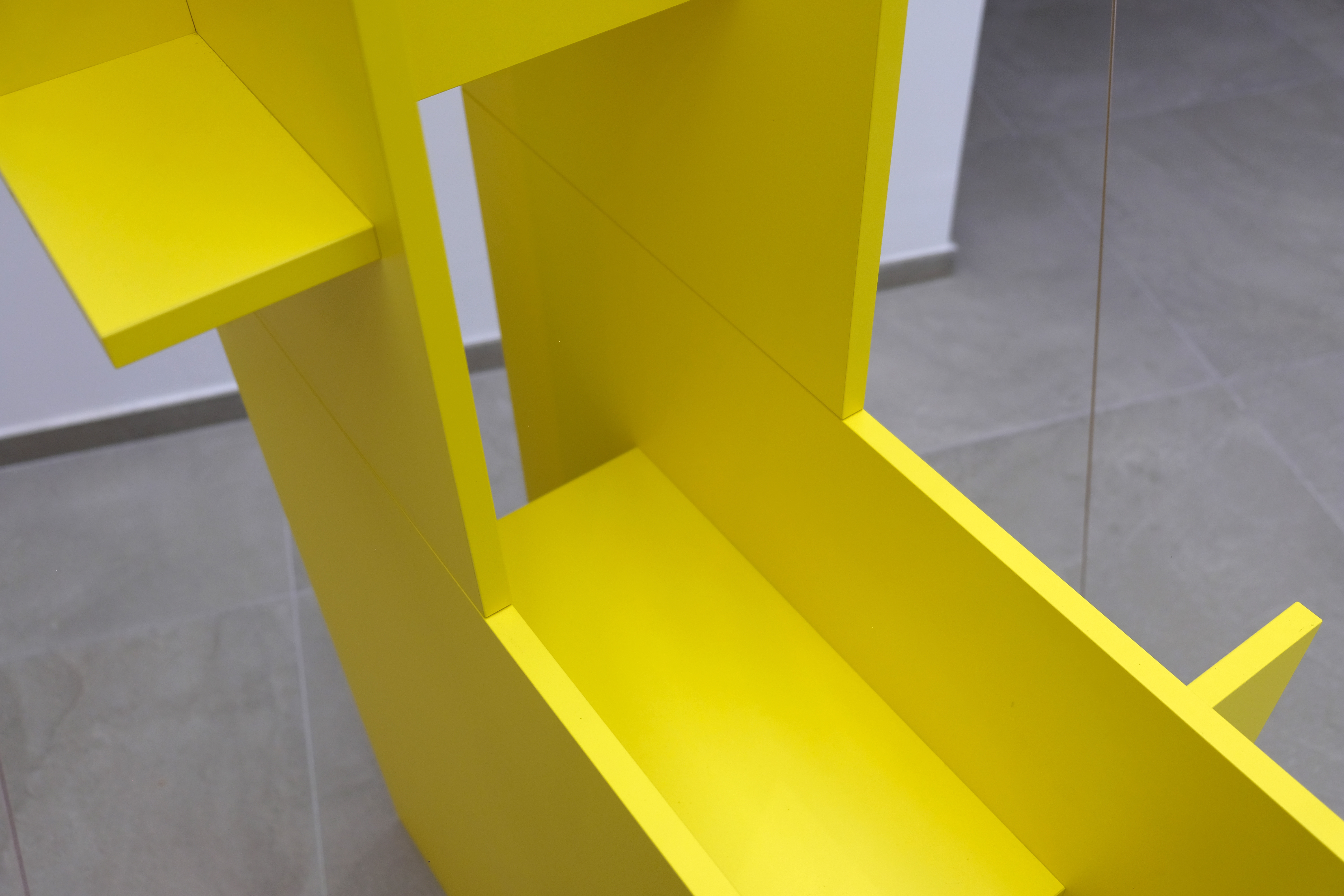 This work forms part of Home is the New Travel, a body of works produced for the exhibition Blink that re-uses parts of a furniture line I produced for a manufacturer in combination with objects and materials found around our homes. The works float between the ‘original character’ of the furniture and objects and possible new identities, between the usual functional expectations they evoke, and unexpected possibilities, between useful and usefulness, between the abstract and the figurative.